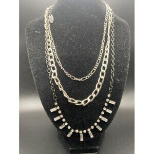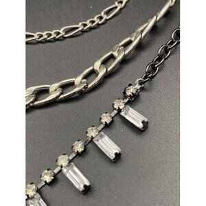 Signed Etc! Necklace Etcetera Vintage Tiered 3 Strand Silver Tone Rhinestone 14"