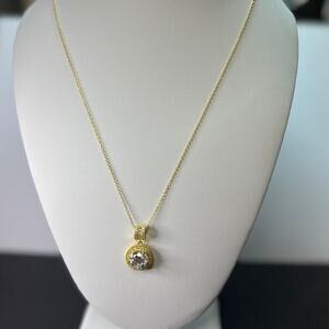 Signed FZN gold over Sterling CZ halo pendant and chain necklace
