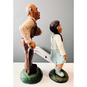 Signed Folk Art Wood Figures Pair Man and Girl Hand Carved J. Schmidt