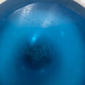 Signed Franco Moretti Scavo blown glass perfume decanter Italy - Blue . Featuring frosted glass with a bright blue base, red collar and blue/purple stopper. 6.25" tall with the stopper. Signed Franco Moretti perfume decanter hand made using the Scavo technique. Featuring frosted glass with a bright blue base, red collar and blue stopper. The bottle itself is free from any cracks, chips or repairs. The stopper does have some small expected rub-marks. The bottle measures 4.5" tall without the stopper. 6.25" tall with the stopper. The bottle has a 3.75" diameter at its widest. The stopper is 2.75" long x 1.25" at its widest
