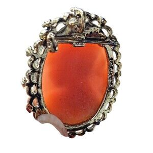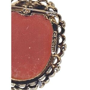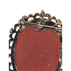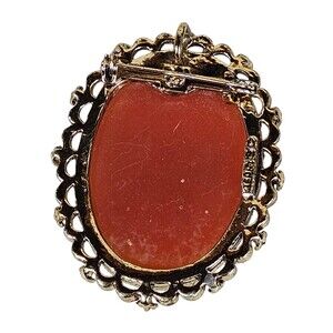 Signed Gerry's Lady Protrait Cameo Brooch Coral Color Resin Gold Tone Vintage