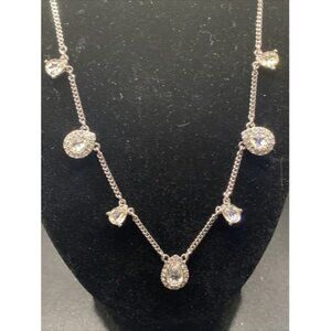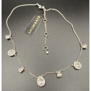 Signed Givenchy Necklace Rhinestone Pear Shape Crystal Silver Tone 15" + 3" NWT