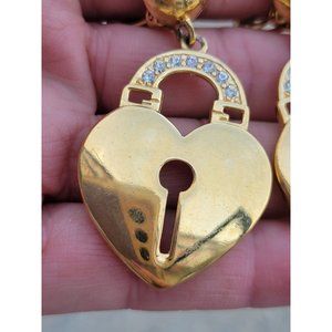 Signed Givenchy Paris NY Padlock Heart Drop Clip Earrings (A50)