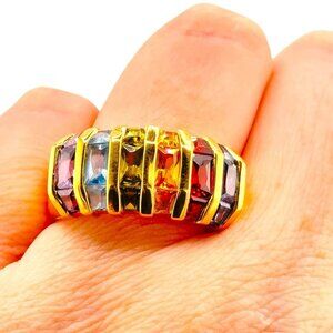Signed Gold Vermeil 925 Rainbow Cubic Zirconia Channel Set Ring Size 9 Statemen