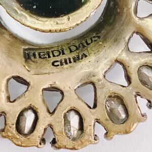 The domed pavé tops and bold circular drops capture the unmistakable door-knocker silhouette that defined early-2000s designer glamour. Antiqued gold tone and clear rhinestones lend these signed Heidi Daus clip-ons their signature blend of opulence and wearable drama—statement sparkle with a timeless edge.