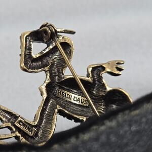 Elevate your style with this stunning Vintage Heidi Daus frog brooch, meticulously crafted with sparkling green Swarovski crystals & and pink eyes on an antiqued gold-tone setting. This collectible pin is inspired by whimsical nature motifs and exudes signature Heidi Daus glamour. Add a playful yet sophisticated touch to your ensemble with this unique designer piece.