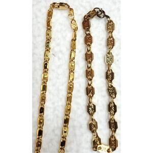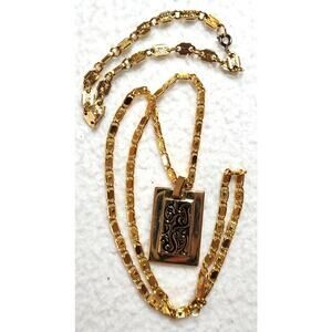 Signed High End 18 KGP Gold Necklace Bracelet Paisley Pendant Detailed Chain