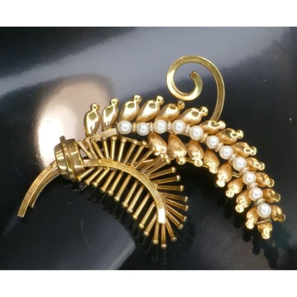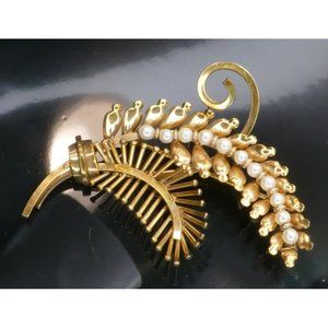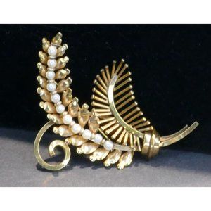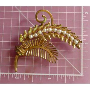 Signed IPS 1/20 12K GF & Pearl Brooch - Beautiful Botanical Design