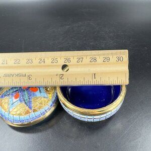 Signed Italian Round Hand Painted Trinket Dish W Lid Jewelry Holder Storage VTG