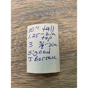 No visible flaws. Measurements: 10" tall, 1.25" diameter top, 3 3/8" diameter base.