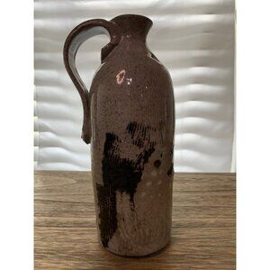 Signed J. Borrem Handmade Ceramic Jug Vase with Handle Abstract Black Design