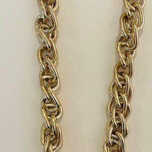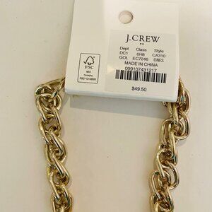 A stunning J.CREW gold tone gold statement necklace. It features a beautiful chain design with a secure lobster clasp, perfect for any occasion The necklace is signed and boasts a unique style that is both bohemian and fashionable, making it the perfect accessory for any outfit. The necklace is 18 inches in length and has a gorgeous gold tone that will complement any outfit.