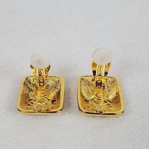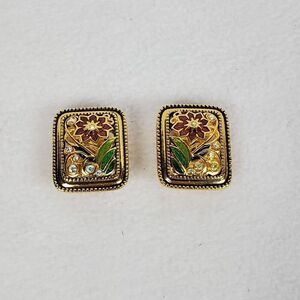 Add a touch of elegance and beauty to your outfit with these stunning signed JOAN RIVERS enamel rhinestone floral picture frame clip earrings. The intricate design features a rectangle shape with a clip-on closure for easy and comfortable wear. The earrings are perfect for any occasion and are sure to make a statement with their multicolor beauty. These earrings are a great addition to any jewelry collection and are perfect for those who love beauty, art, flowers & plants, and fashion & costumes. The earrings are 1 inch in length and are designed for the lobe area. Don't miss out on the chance to own these stunning earrings from the famous JOAN RIVERS brand.