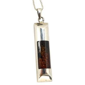 Signed JZ Sterling Silver Modernist Amber Pendant Necklace Baltic Amber Inlay