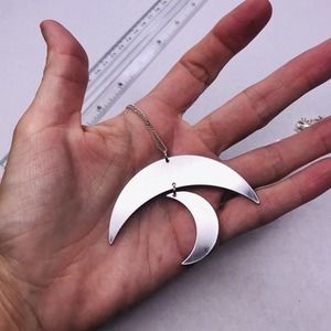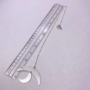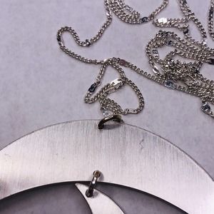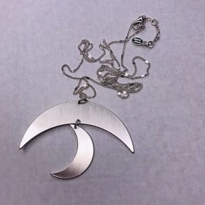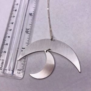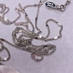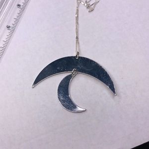 Signed Jade & Jasper Necklace Silver Tone Crescent Moon Dangle Pendant 32" Long