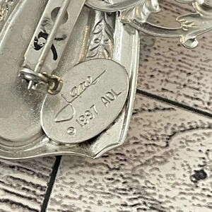 Signed Jane AOL 1997 Silvertone W/ Crystal Stone Vintage Brooch