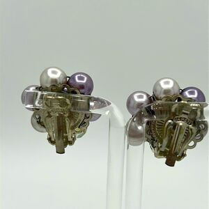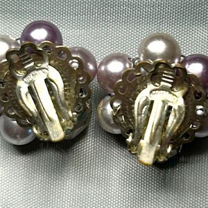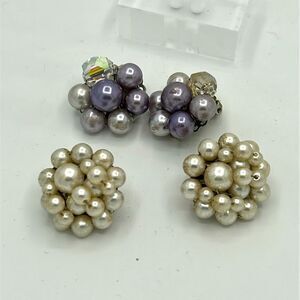 Two pairs of signed Japan vintage faux pearl cluster earrings. Clip ons.
