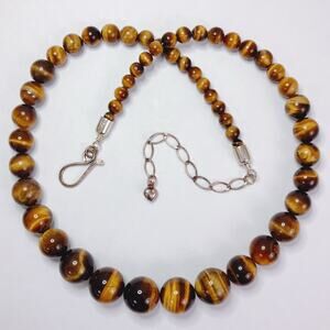 Signed Jay King DTR Sterling Silver Tiger Eye Graduated Gemstone Necklace 22 VTG