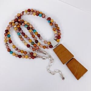Rich desert tones and natural textures give this Jay King necklace a grounded, artisan presence. The mix of turquoise, jasper, and petrified wood creates a warm, earthy rhythm that feels collected rather than assembled. It carries the quiet confidence of true natural materials shaped into a piece with character and depth.