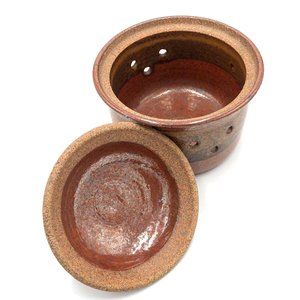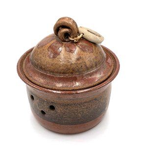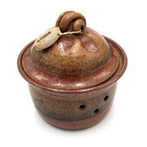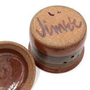 Signed Jimee Studio Art Pottery Clay Garlic Jar Cannister w/ Lid