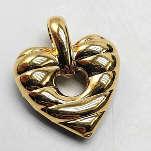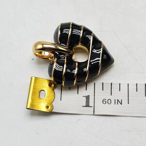 Signed Joan Rivers Black Enamel & Gold Reversible Heart Pendant Vintage