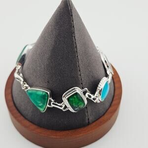 Signed KC Green enamel silver tone bracelet earring set