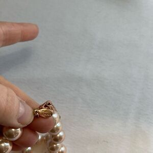 Signed KJL Kenneth J Lane Large Faux Pink Pearl Hand Knotted Necklace