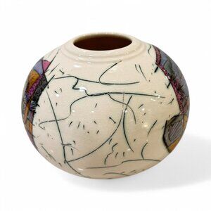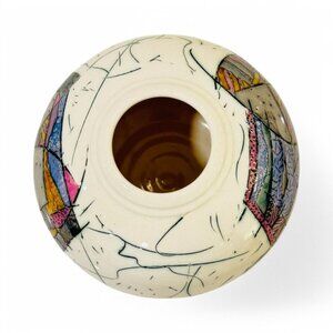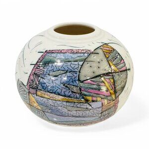 Signed Kirk Freeman Polychrome Ceramic Vase Studio Art Pottery Post-Modern 7"x5"