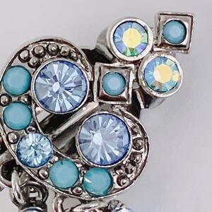 The cool blues and soft turquoise tones give these Kirks Folly clip-ons a light, playful charm, with each tiered dangle adding movement and sparkle. Their floral clusters and fantasy-inspired detailing echo the brand’s signature whimsical mood, creating an easy statement for collectors and anyone who loves color-forward vintage jewelry.