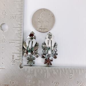 Signed Kirks Folly Blue Rhinestone Floral Chandelier Clip On Earrings Vintage