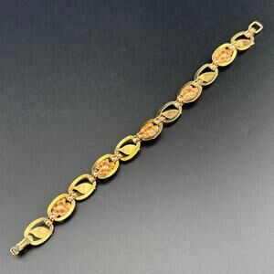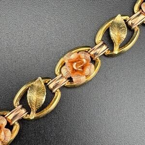 Signed Krementz Rose Yellow Gold Filled Flower Chain Bracelet 7"