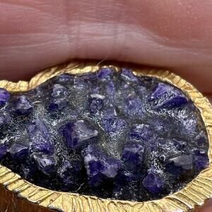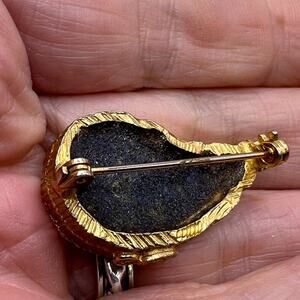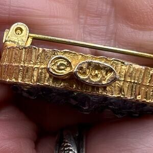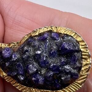 Signed Lester JOY Plique a Jour Purple Paisley BROOCH Gold Tone Costume Jewelry
