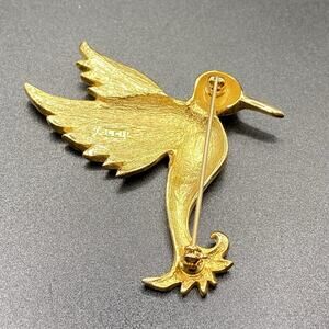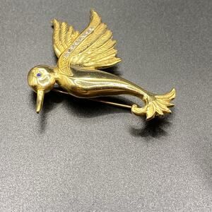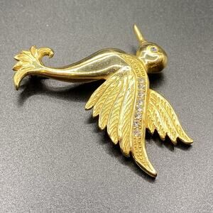 Signed Liz Claiborne Rhinestone Hummingbird Brooch Pin Costume