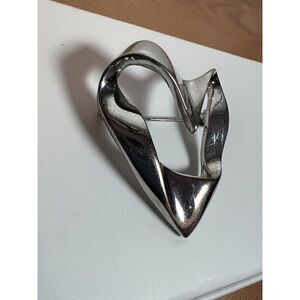 Signed M Jent Abstract Mod Retro Silver Tone Heart Brooch Pin VTG