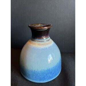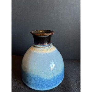 Signed MMMS BEAUTIFUL Stoneware 4” Art Pottery Bud Vase Blue Drip Glaze