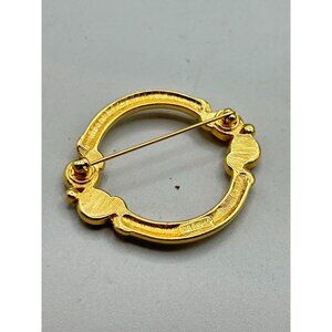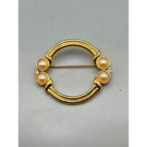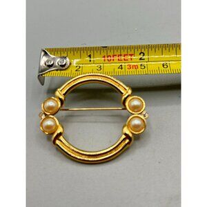 Tags: Signed MONET, Small Circle Pin, Circle Brooch, Round brooch, wreath pin brooch, Gold Tone, Faux Pearls, Elegant jewelry, Classic Pin, designer jewelry, costume brooch, vintage fashion pin, simple classy brooch