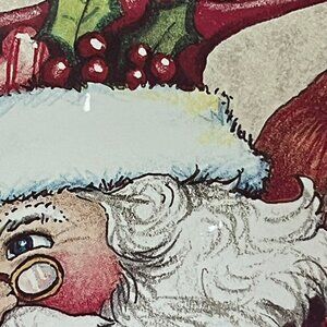 Signed Mary Engelbreit Mark Roberts Christmas Glass Santa Plate Platter 2014