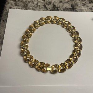 Signed Maxine Denker Wide Chunky Statement Necklace Gold Tone Chain