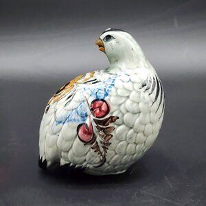 Signed Mexican Ceramic Glazed Bird Figure Floral Sitting Facing Back VTG 5"