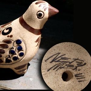 Very unique SIGNED piece of MEXICAN FOLK ART! Handcrafted piece depicts a bird with various hand painted accents! Sculpture is composed of terracotta / clay / ceramic! Bottom of figure is signed. Piece shows amazing craftsmanship, imagination and quality! Extremely well made. Piece is in excellent original condition with no breaks, cracks or repairs (please refer to photo). This is a very collectable piece of FOLK ART that will display beautifully in any setting! A must have for collectors!