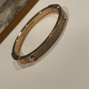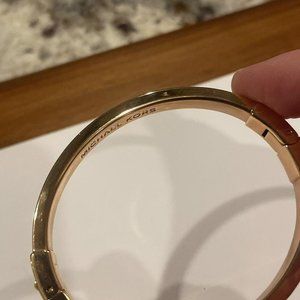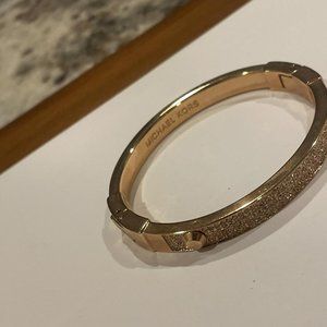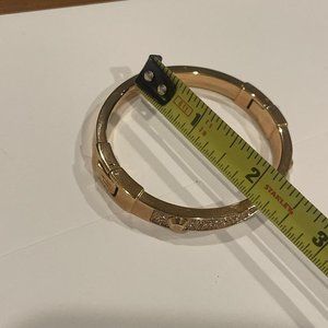 Signed Michael Kors Hinged Bangle Bracelet Rose Gold Tone / Crystal