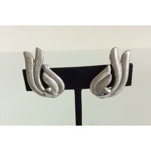 Brand: Monet Condition: Pre-Owned Good Used Condition Silver Tone Vintage Look Ribbed Design Clip On Earrings
