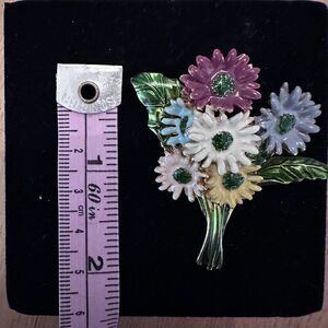 Signed Museum Of Fine Arts Enamel Floral Brooch Vintage EUC Red Blue Pink Yellow
