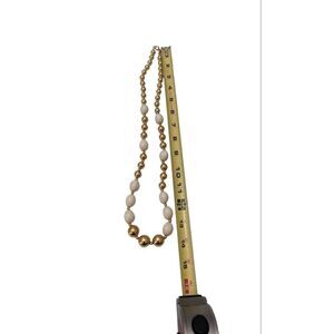 Signed NAPIER Goldtone Cream Round Oval Beads Shape 29" Necklace Vintage