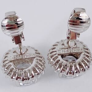 Signed NM Neiman Marcus CZ Halo Clip On Earrings Silver Tone Formal Evening