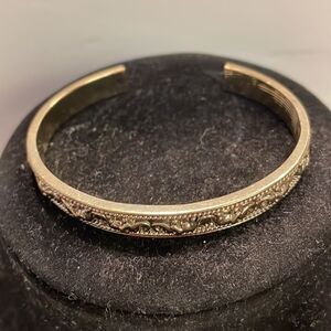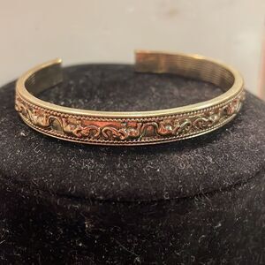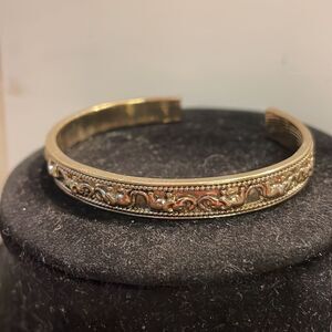 Signed NRO Avon Vintage-1970s 2.75” gold tone raised elephant bangle bracelet