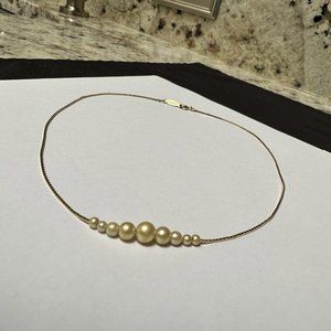 Signed Napier Gold Tone / Faux Pearl Bead Necklace 16 Inch