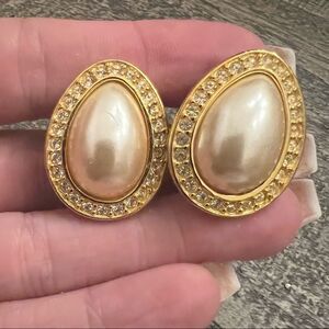 Signed Napier Vintage Faux Pearl Teardrop Screw Clip On Earrings