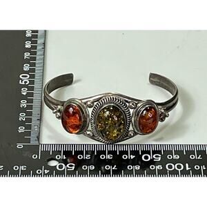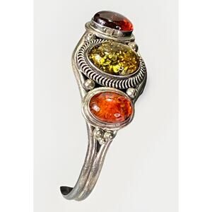Signed Navajo Sterling Silver Amber Gemstone Cuff Bracelet 925 Native American- 21.7g total weight