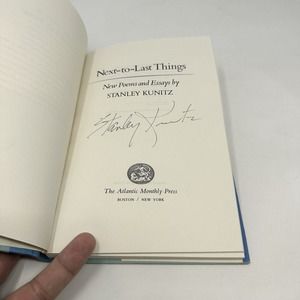 This signed first edition hardcover book titled "Next-to-Last Things: New Poems & Essays" by Stanley Kunitz is a must-have for any poetry lover. The book features 130 pages of Kunitz's beautifully crafted poems and essays.